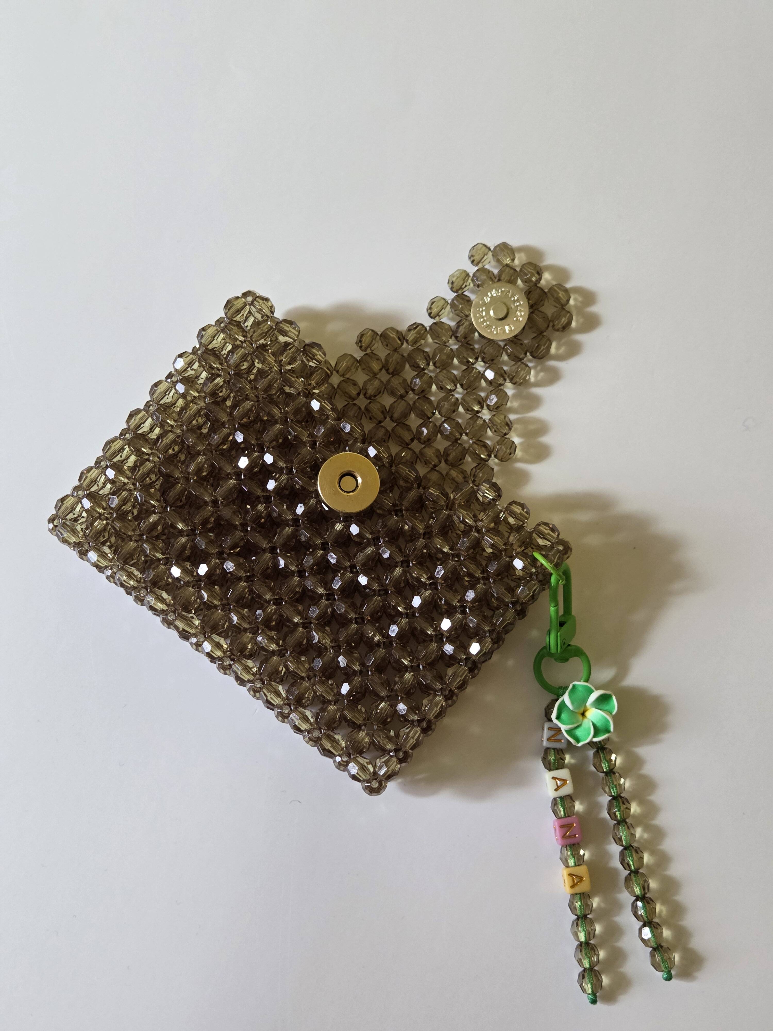 Handmade with premium acrylic beads, this double-sided card holder fits cards, cash or coins with ease.